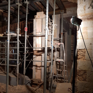 Très difficile de circuler dans cette forêt constituée d'étais de soutien et c'est une des raisons pour laquelle les bénévoles ne peuvent pas intervenir pour retirer les tonnes de gravats.